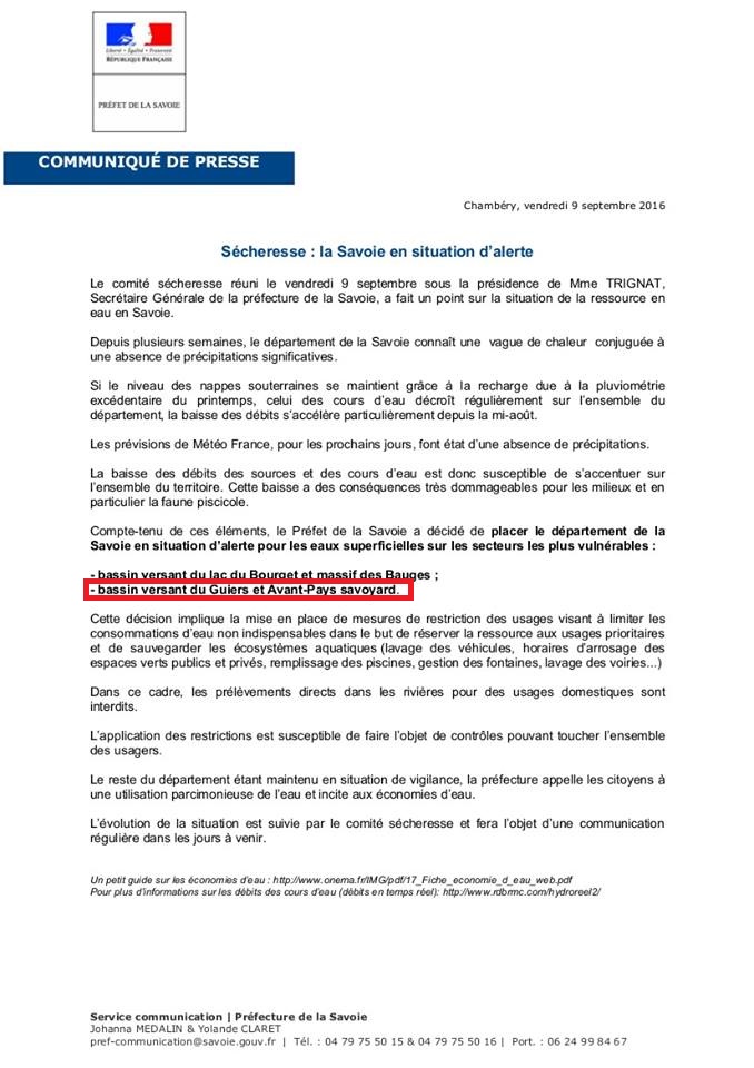 Est aussi concerné par cet arrêté, le bas du Guiers et l’avant pays de Savoie…