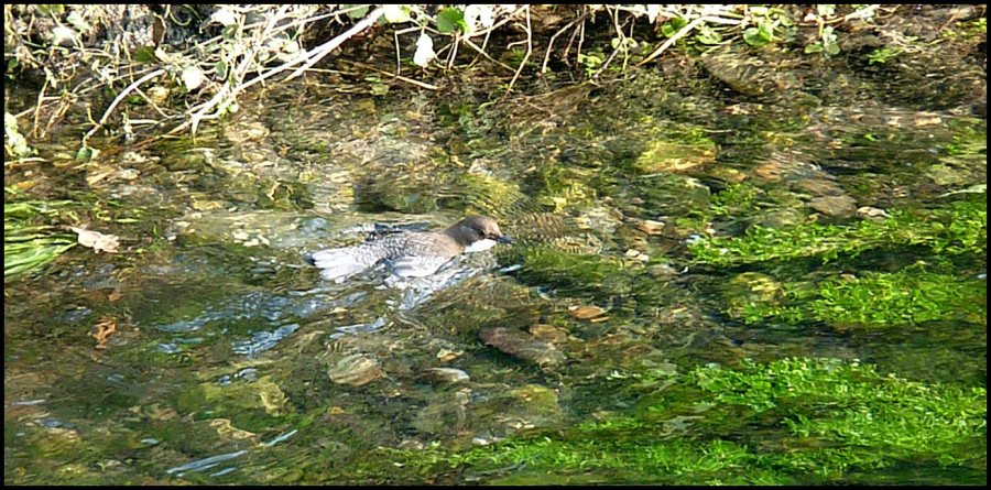 Hier après en allant faire quelques repérages de frayères, j’ai pu durant un long moment observer un Cincle plongeur , s’activer à la recherche de sa pitance, (larves aquatiques).