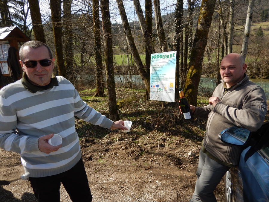 Côté pêche ce ne fut pas terrible pour les pêcheurs qui ont pratiqués sur le Guiers, surtout que cette belle journée ensoleillée , a fait fondre la neige et du coup l’eau était haute et blanche. Pourtant les spécialistes comme les amis Jérôme, Patrice, Claude et Jean Luc , n’ont pas réussis à toucher une truite l’après midi, du moins jusqu’à mon départ 17h. D’autres pêcheurs contrôlés, ont eu réussis à toucher aux leurres quelques jolies truites sur le no-kill, d’autres plus aval, ont touchés deux belles truites aussi (pas de photos), de toutes façons, celles-ci ne sont plus dans le Guiers 😦