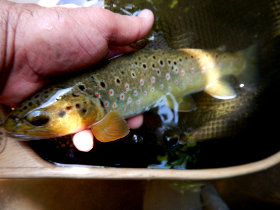 Les truites, toujours présentent malgré cette chaleur, elles étaient aussi amorphe que moi, mais j’ai quand même pu en toucher quelques unes, mais peu en rapport aux sorties précédentes, 8 truites au total, quelques unes prisent en nymphe à vue et les autres au fil sur des parties avec plus de courant, j’ai même pris une arc en ciel et un cheucheu, je vous met la vidéo des plus jolies de la session.