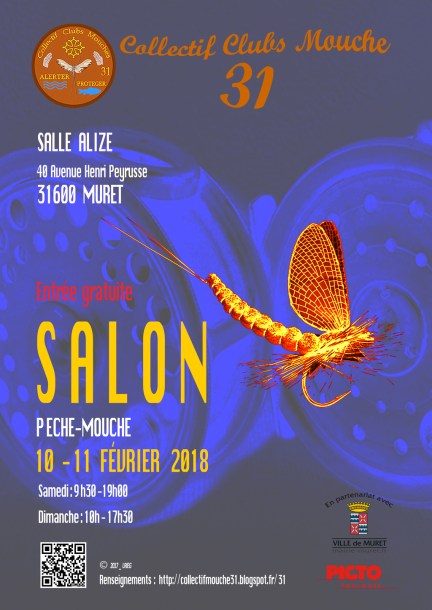 Le collectif clubs mouche 31 organise pour la deuxième fois dans sa région Toulousaine un salon amical et artisanal de la pêche à la mouche artificielle du 10 et 11 février 2018 à Muret, pour plus d’infos c’est ICI