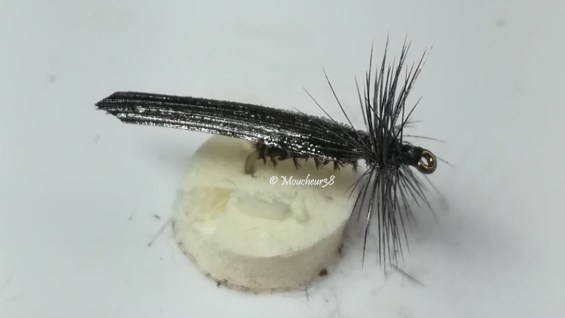 Dans la continuité, dés la mi-Avril, ce petit trichoptère , que vous pourrez également monter ce type de mouche, qu’on appelle Cul vert, c’est une mouche incontournable, lors de ces apparitions, les truites en deviennent folles.