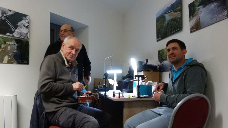 c’est important de monter des mouches le ventre plein, une fois fait les mouches se montent toutes seules (lol). Pour le monde, comment dire, le local est petit, il nous faudrait une plus grande salle, à envisager si l’hiver prochain nous sommes plus nombreux, à cause de l’article dans le Dauphiné.