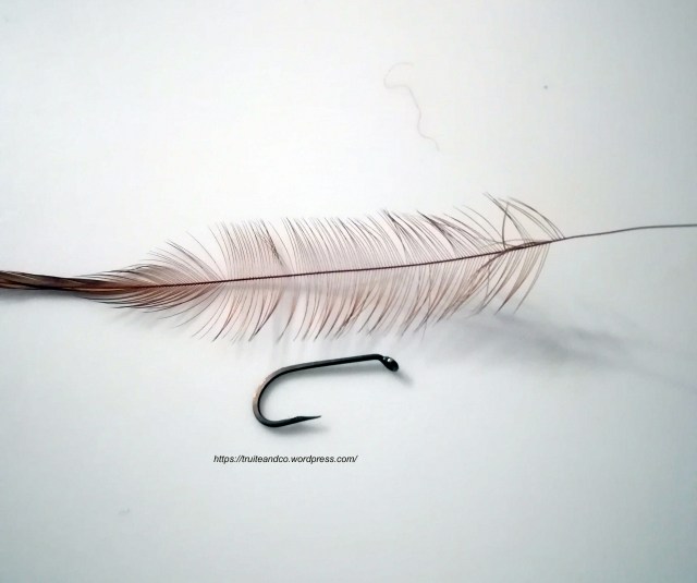 La longueur des fibres sera égale à la longueur de la hampe de votre hameçon pour un parfait équilibre sur l’eau. Le fil de montage déterminera la couleur du corps, veillez à ce que l’enroulement de la plume soit légèrement espacé pour laisser apparaître la couleur du corps. Déclinez en gris clair, gris foncé, roux, olive, noir.