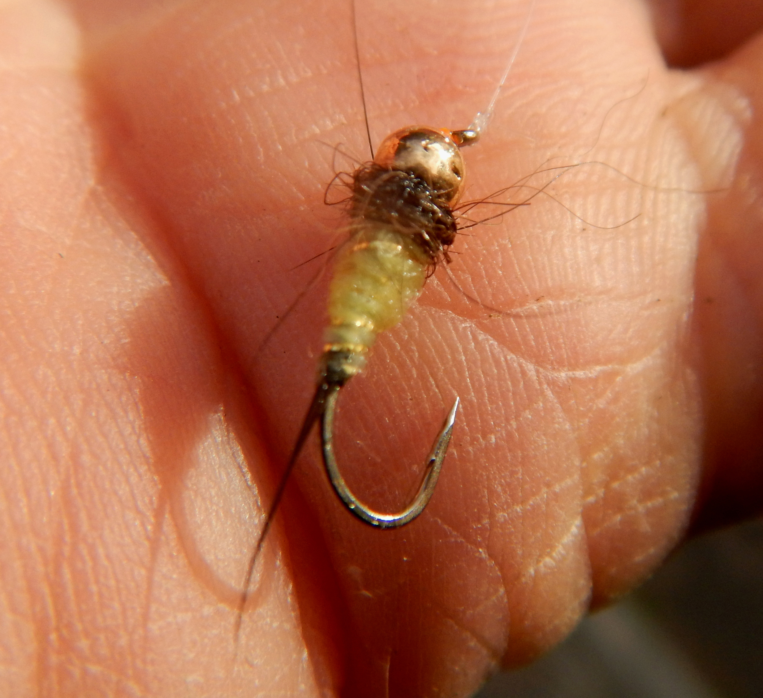 Cette nymphe, une fois trempée dans l’eau, prend des aspects qui vire vers l’olive, c’est une très bonne nymphe à utiliser en début de saison, dés que les Baetis commencent à sortir.