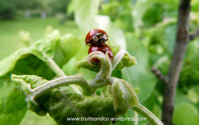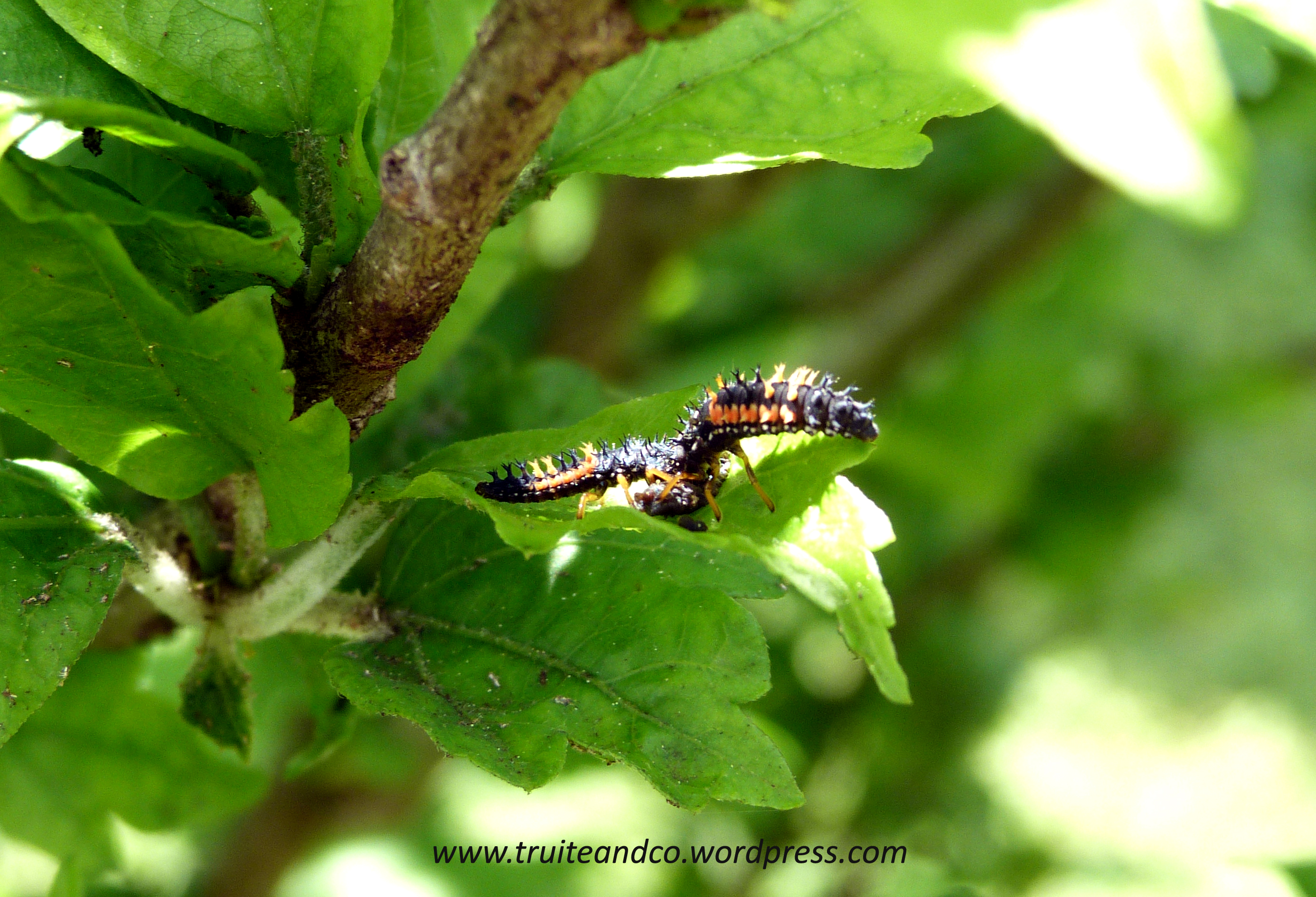 Comme les coccinelles sont là pour manger les pucerons, autant les faire travailler à ma place et en premier lieu, j’en ai déplacé quelques-unes sur certains de mes arbustes, les coccinelles étaient en nombre plus important que sur d’autres arbustes, c’est alors que l’idée m’est venu d’en déplacer quelques-unes, pour les mettre sur mes pommiers, ainsi que sur d’autres arbustes.