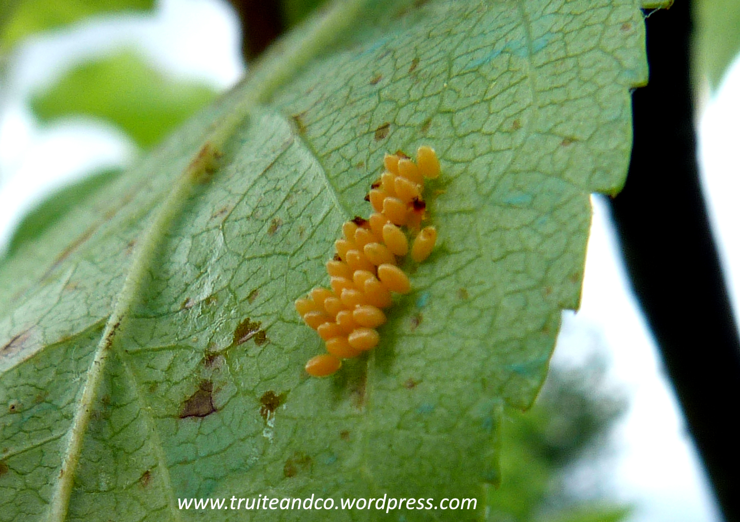 Je me suis donc intéressé de plus prés à ses insectes et depuis deux jours, je passe mon temps à les observer dans les feuillages. Armé de mon appareil photo, j’ai pu découvrir de nombreuses coccinelles, des œufs collés aux feuilles, une multitude de larves en vadrouille en quête de pucerons et tout ce petit monde grouillant de vie, œuvre pour que mes arbres fruitiers, rosiers ou arbustes, se portent bien et cela m’a donné l’idée d’en faire un article sur ce blog, que je vous présente aujourd’hui.