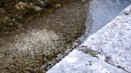 Longeant la berge, j’aperçois au loin, une très grosse truite, accompagnée de quelques mâles vigoureux qui gravités autour d’elle, mais à mon approche, elles sont tout parties dans les caches. Méfiantes comme jamais, malgré une longue attente à filmer, elles ne sont pas réapparues, j’ai tout juste saisi un bref instant en vidéo, je ne sais pas si vous arrivez à la voir sur la photo, elle se trouve en haut et à droite du nid..
