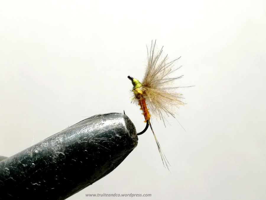 voici encore une mouche qui m’a bien réussi cette semaine sur mes dernières sessions, malgré des éclosions des baetis Rhodani, dont le modèle que je présentais n’intéressait pas les truites, j’ai changé pour ce modèle et les truites convoitées ont de suite pris cette mouche, alors qu’elles me faisaient des refus sur la mouche précédente.