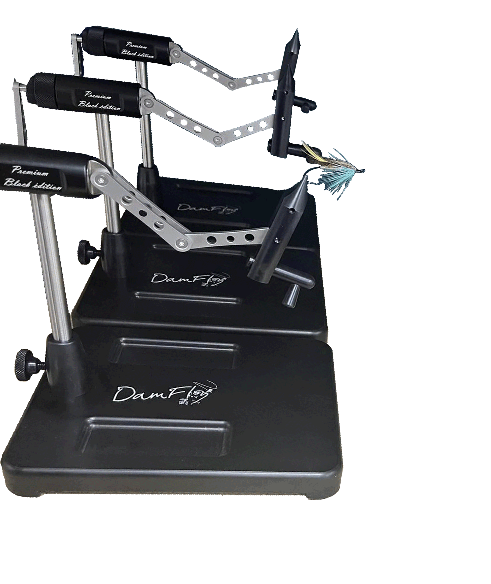 voila un très bel outil pour les passionnés de montage de mouches artificielles, et je profite de vous relayer une promo faites par mon ami Damien Spoto, créateur de la marque Damfly et de l’étau Premium et le tout dernier sorti de ses ateliers, le ‘Black Premium’.