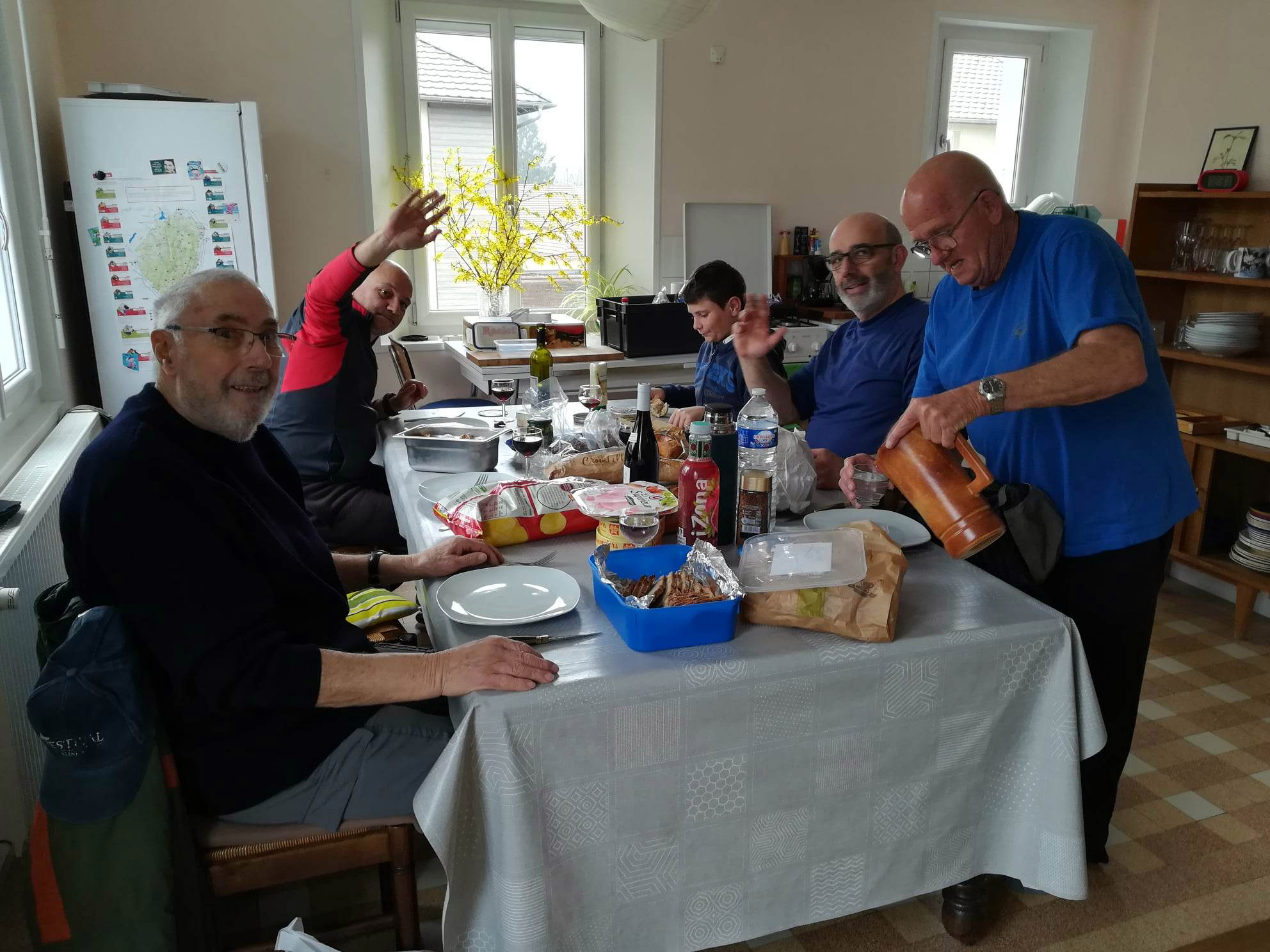 Vue les conditions de pêche, nous décidons de redescendre en plaine, il est l’heure d’aller au casse croûte, cette année, ce sera bien au sec et au chaud que nous allons partager notre repas, dans le grand appartement loué par David et Claude pour passer le week-end, on ne pouvait être mieux cocoonés !