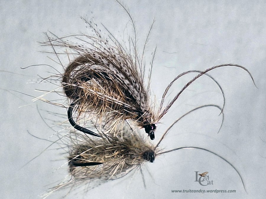 - Pour la fixation des antennes, prélevez deux sabres de queue de faisan et les fixez derrière la tête, les pointes dirigées vers l’avant, amener le fil de montage au pied des ailes et former une boucle à dubbing.