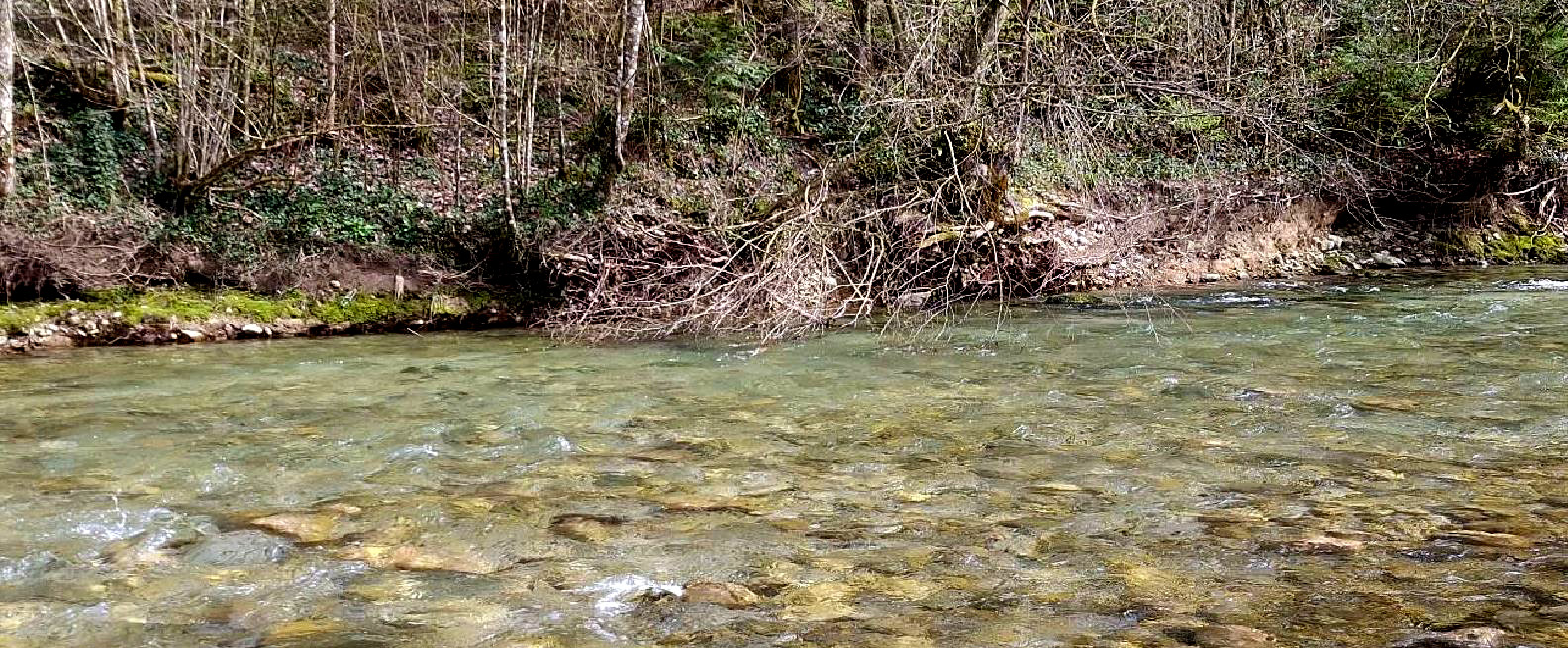 Ce fut un bel aprés midi de printemps, malgré cette eau glacée et ce vent du nord qui m’a considérablement gêné, en créant une bannière lors des passages dans les veines de cette eau émeraude.