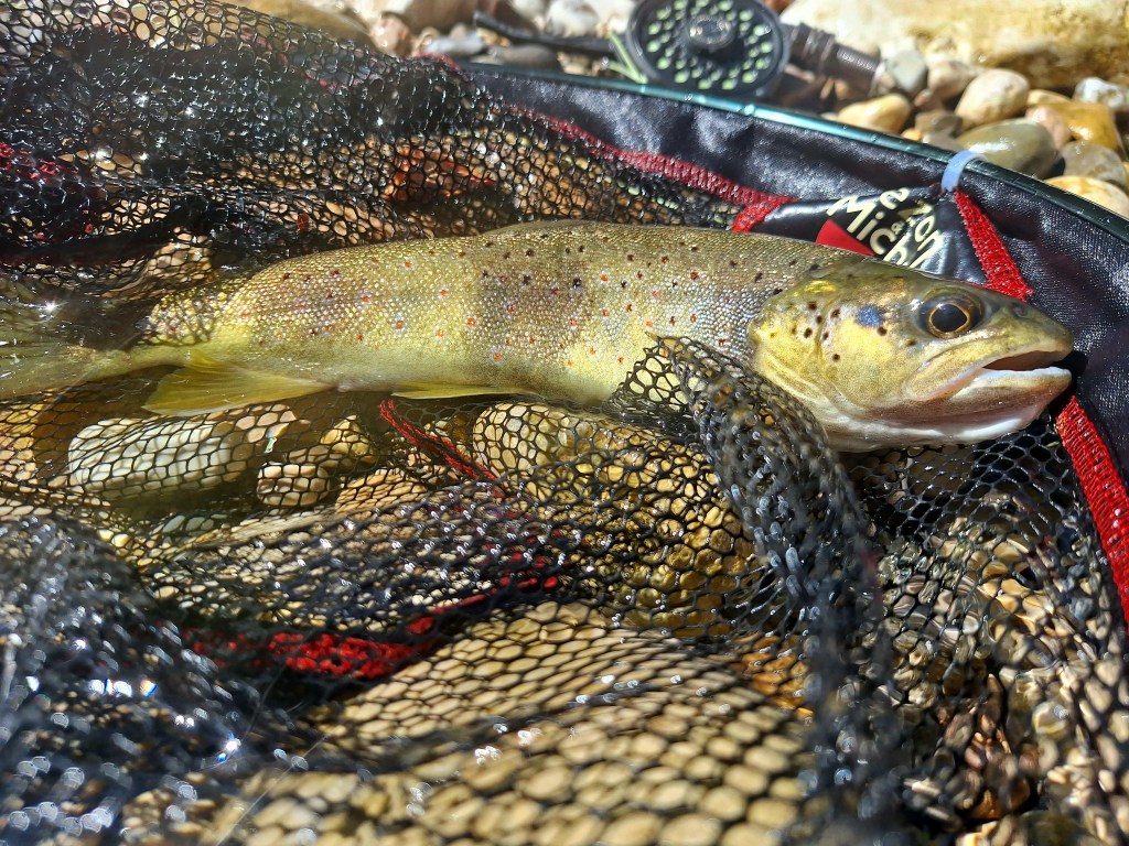Bonjour à vous, voici un petit compte rendu sur ma session de ce mardi 12 septembre, effectuée de 12h à 15h30, pour laquelle je n’ai uniquement pêché qu,en sèche. J’en ai fais monter un paquet et je termine cette session avec une trentaine de truites de toutes tailles, dont quelques belles, qui se trouvaient à l’affût sous les gros blocs. Quel pied de les voir monter et se saisir de la mouche, mon seul regret c’est de n,avoir pu filmer ces scènes. Mon sedge chevreuil/cdc agrémenté d’un tag orange fluo à séduit ces sauvageonnes !