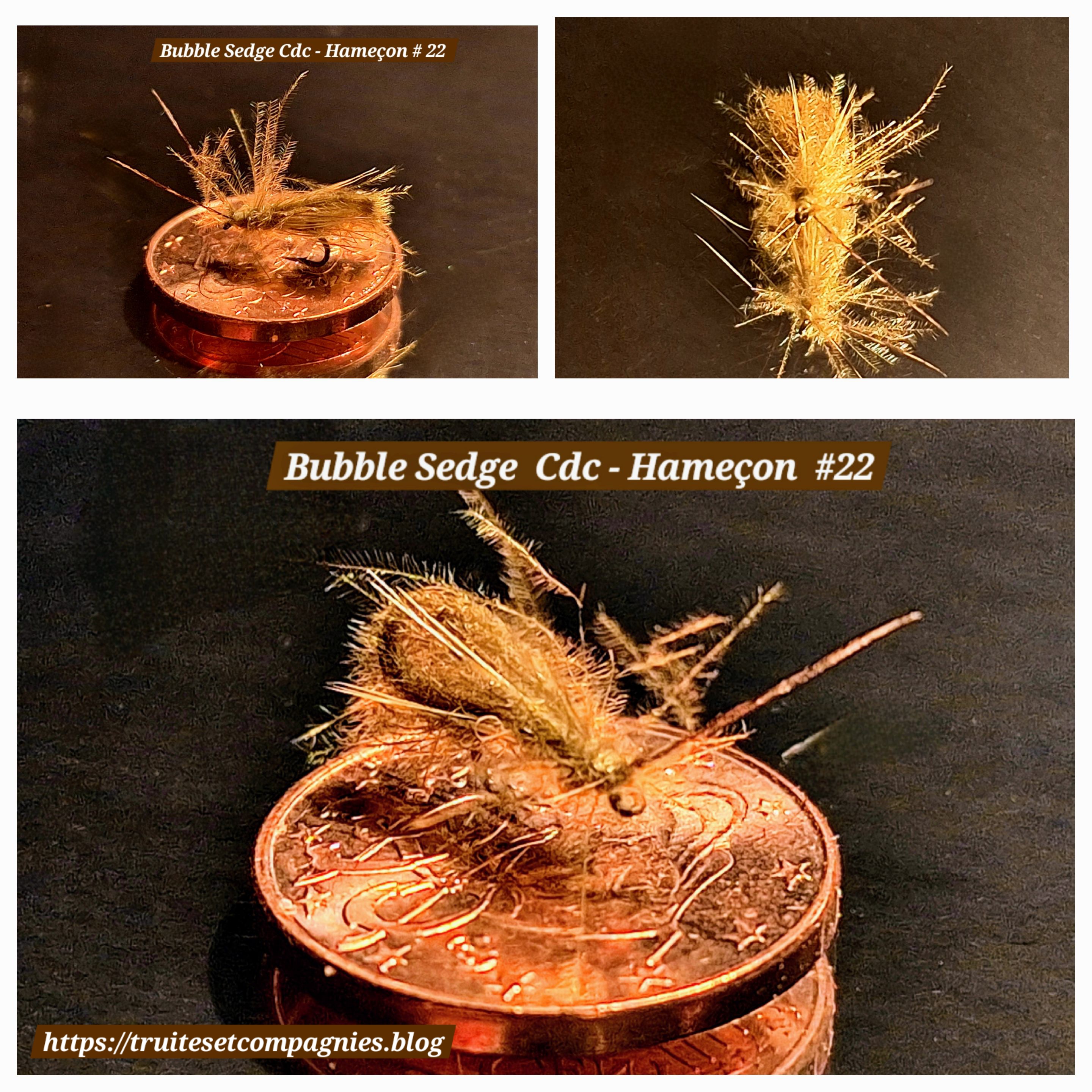 Et donc, je vous propose la réalisation d’un tout petit Bubble sedge monté sur un hameçon n°22. Certes ce n’est pas un montage facile pour les néophytes, mais sans doute plus aisé pour d’autres, mais j’avais envie de tester mes capacités à réaliser une telle mouche sur un tout petit hameçon.
