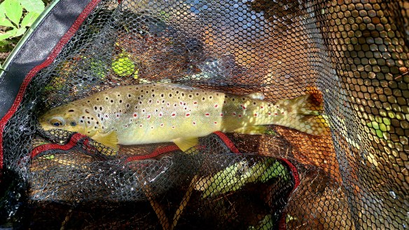 C’est une très belle fario, avoisinant 40 cm, tout en puissance et surtout bien combative, ma Soldarini 9 pieds à bien encaissée les rushs sous les coups de butoir de cette truite bien décidée à en découdre avec moi.