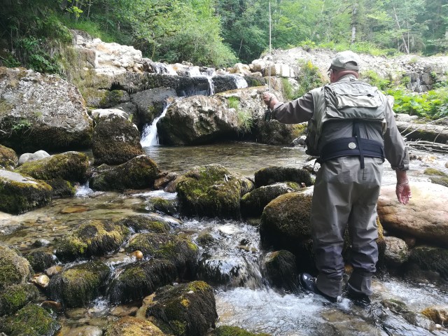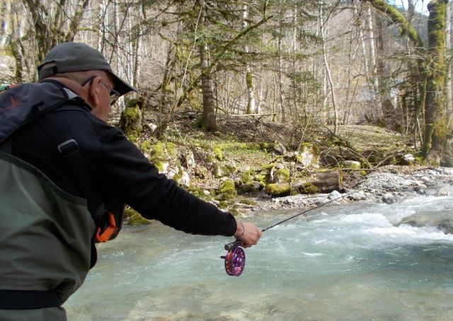 Si votre posé est bien réalisé, que votre mouche suit le courant en se laissant porter au gré du courant, que vous ne cherchez pas à récupérer trop vite votre soie pour relancer. Votre bas de ligne alors, dérivera sans contraintes et votre mouche ira lécher les blocs, raser les rochers, et lorsque le linéaire sera bien prospecté et que votre soie sera en fin de coulée , vous pourrez à ce moment là, relever votre ligne et relancer de nouveau.