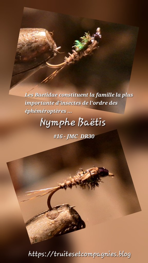 Cependant, pour cette publication, je suggère la création d’une nymphe de baëtis,sujet vers lequel , je vais vous orienter, sur la confection d’une baëtis avec toutefois une variante sur le choix des ingrédients.