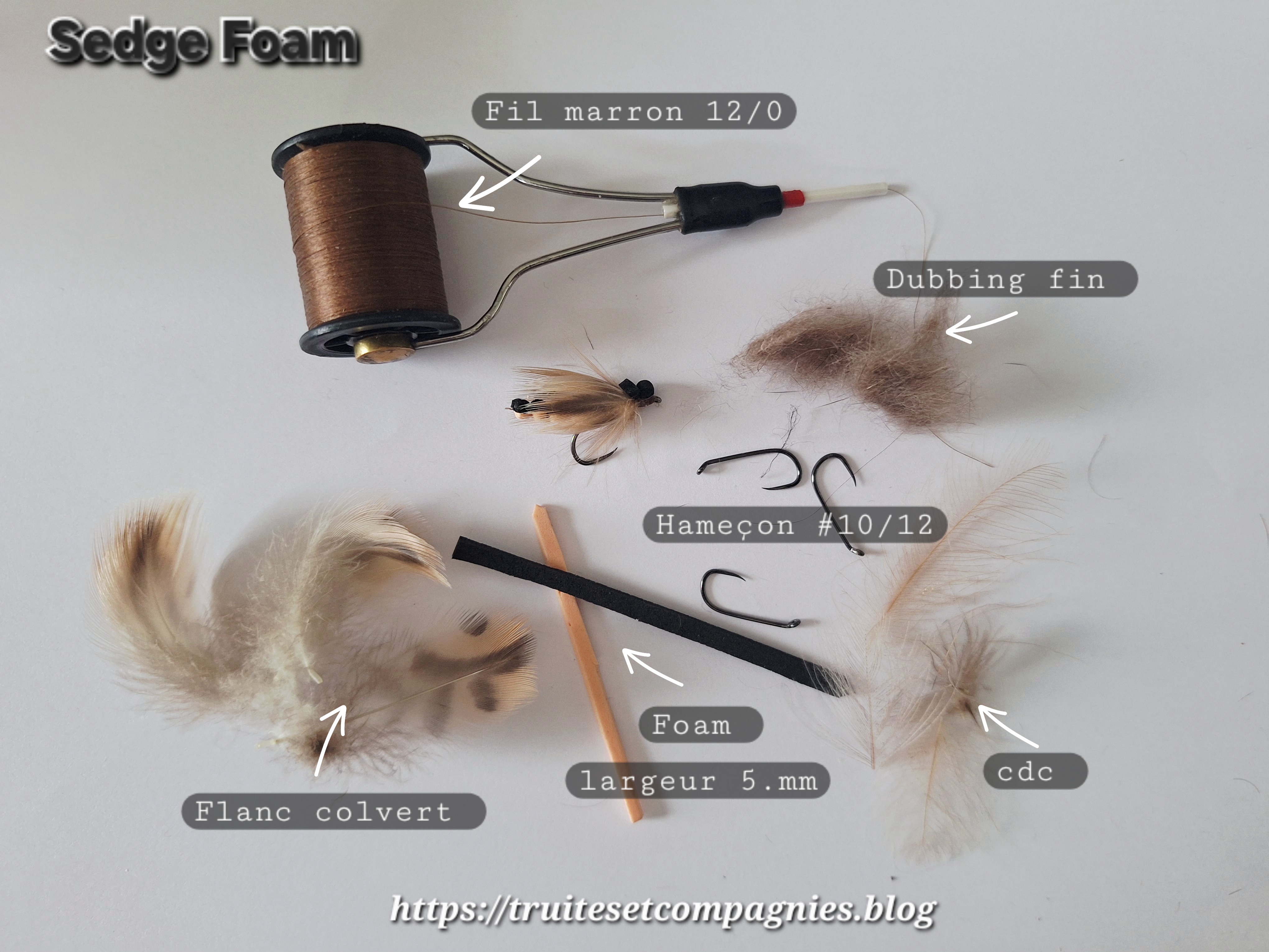 en cette période de pré-ouverture , j’ai le regard qui ce focalise sur le foam et tant qu’à faire, pourquoi ne pas continuer sur cette lancée. Donc pour cette publication, j’ai réalisé un sedge Foam , monté sur un hameçon #10.