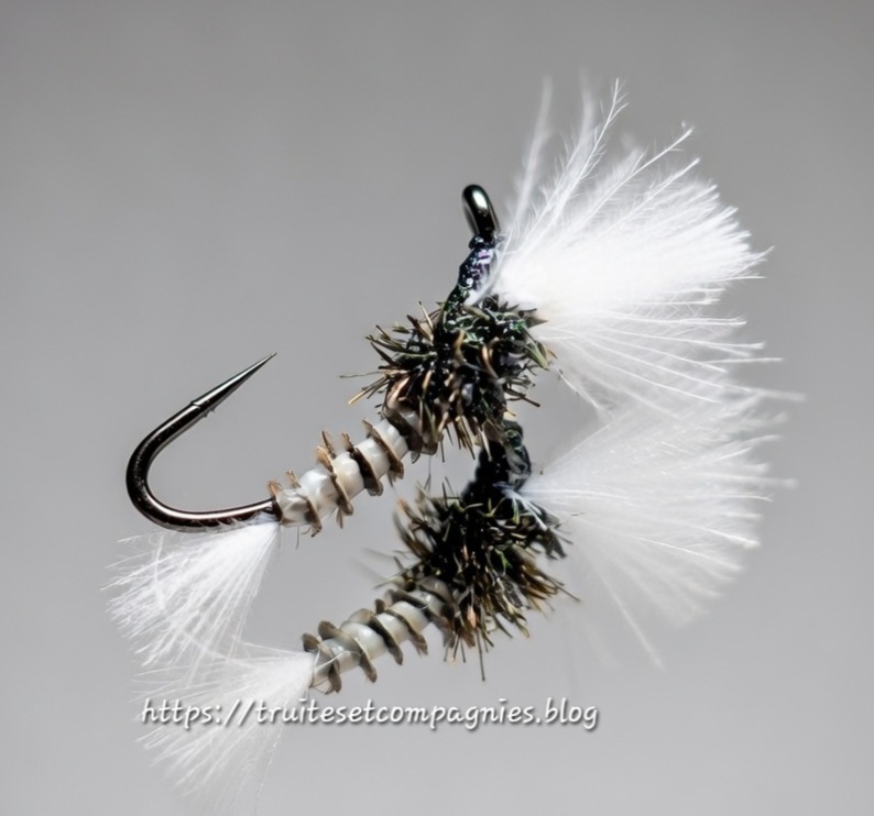 On utilise généralement un bas de ligne assez long, avec deux ou trois chironomes espacés. La soie flotte, la bannière reste sous tension, et les nymphes évoluent à profondeur constante, suspendues comme sur un fil à linge.