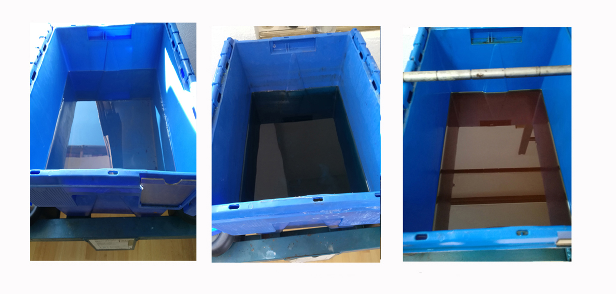 Étape 3 : Les bacs qui accueilleront les mors de mon étau, il y en a cinq en tout, dans lesquels ils seront trempés un certain temps, l’opérateur à un chrono en main.Étape 4 : Les paniers vont passer dans chacun de ses bacs, en 1er le décapage, puis un rinçage, pour ensuite passer au brunissage pour noircir le métal, puis un nouveau rinçage et pour finir le trempage dans un bain d’huile.