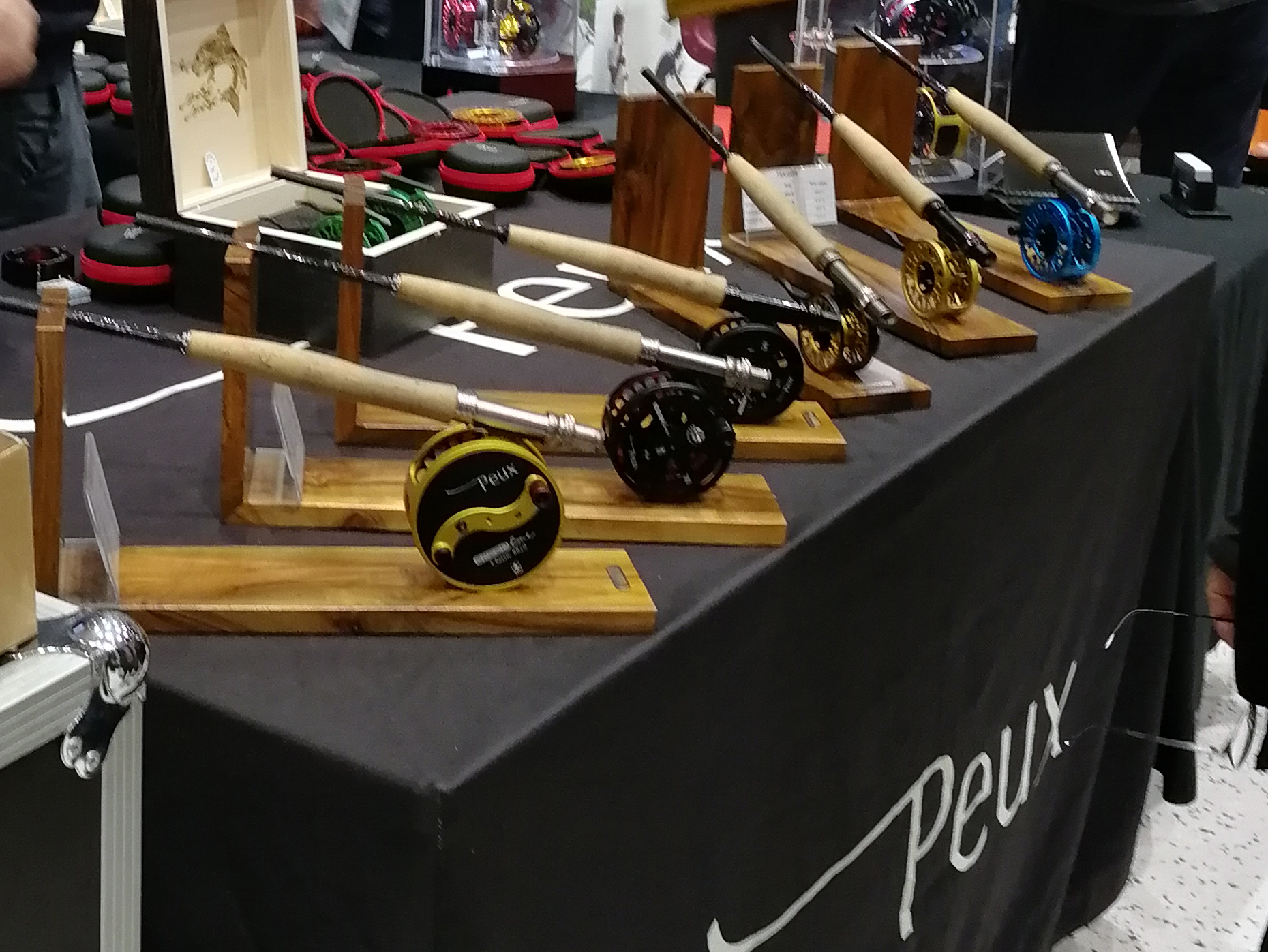 L’incontournable stand Peux, avec la présentation des « Rolls »  des moulinets , c’est de l’horlogerie Suisse, son prix va avec la qualité et la beauté du produit.