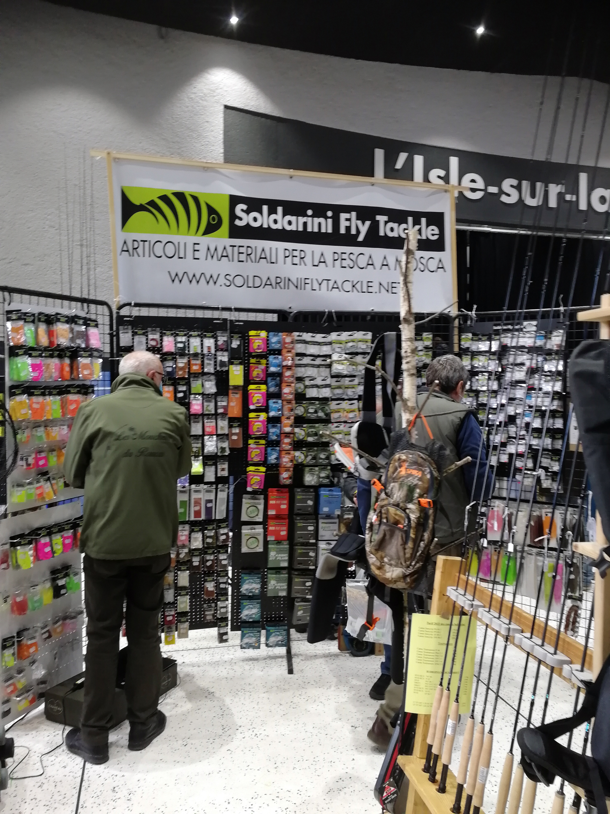 Un arrêt sur le stand de Maxime Miguel de « Tenkara Pyrénées », que je connais depuis ses premiers salons, notamment celui du SANAMA, un gars super, simple et chaleureux et avec l’accent de Toulouse, Claude en profite pour acheter un petit panel de mouches sèches, à un prix incroyable, l’occasion a fait le larron.