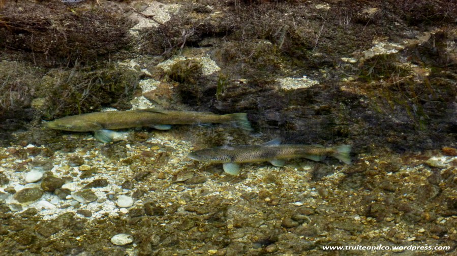 J’ai pu filmé de très loin , une grosse truite et un ou deux mâles restés en retrait.