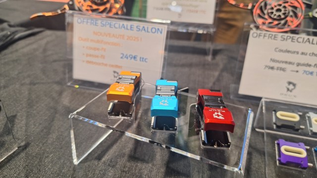 Il nous a fait une démo avec ce coupe fil , qui m’a fait penser à un couteau suisse, tellement il y a de possibilités mis à part couper un fil, avec un coupe fil intégré, très bien pensé. Par contre le prix n’est pas à la portée de toutes les bourses, mais c’est tellement beau qu’on se laisserez tenter.