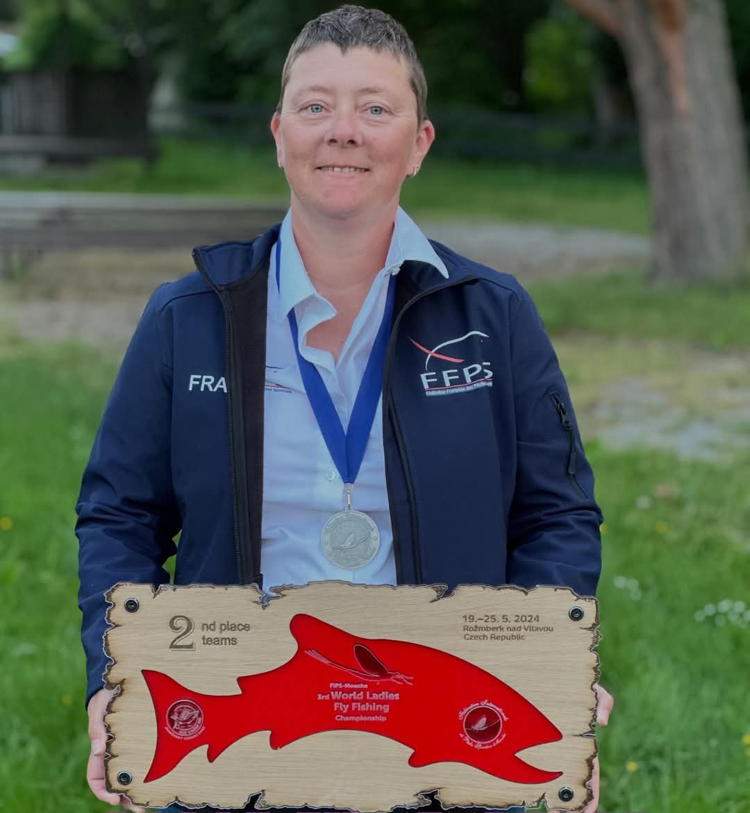 Angélique alias Gigie l’amoroso, médaillée d’argent par équipe au 3ème championnat du monde de pêche à la mouche féminine. Monteuse professionnelle de mouches artificielles de qualité : ONE FLY ONE FISH.