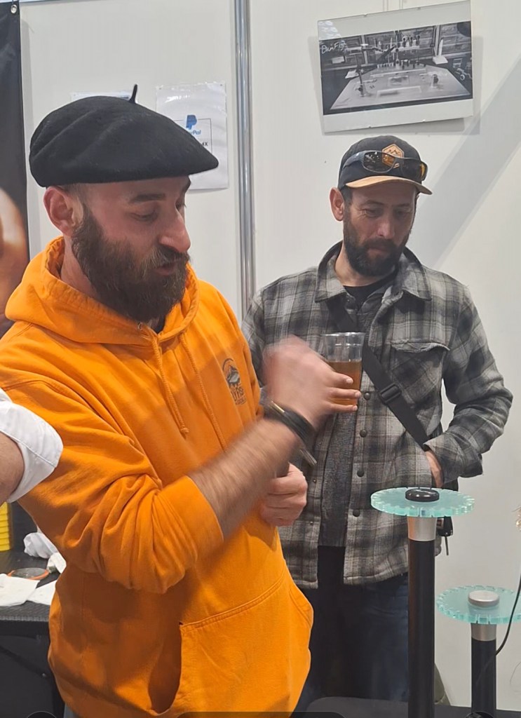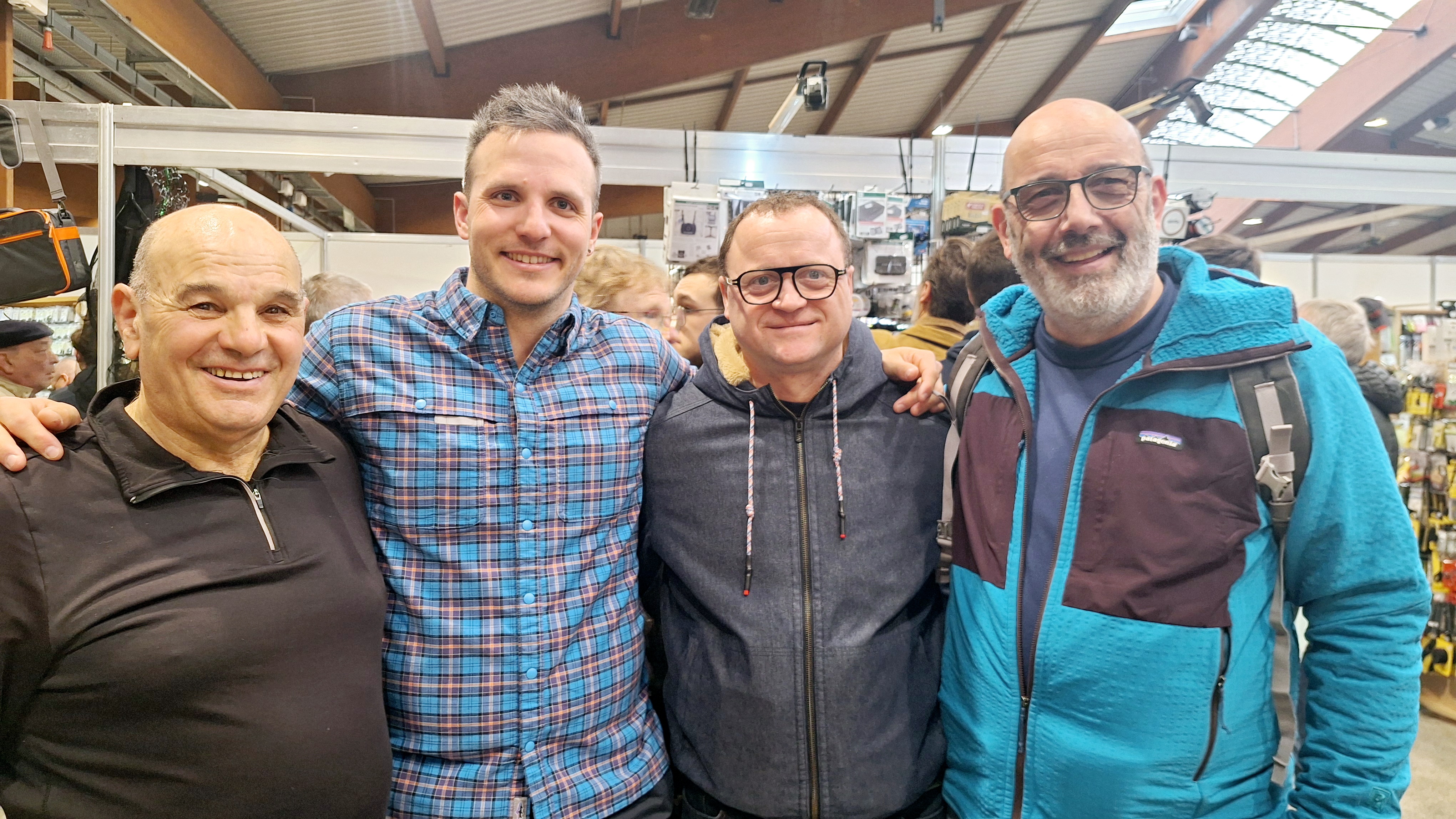 Sur le stand Devaux, après avoir salué Jean-Marc Chignard et un coucou à mon pote Jean Bernard, fidèle au poste comme à chaque salon, c’est la personne avec le chapeau, au centre c’est Marc et Claude à droite.