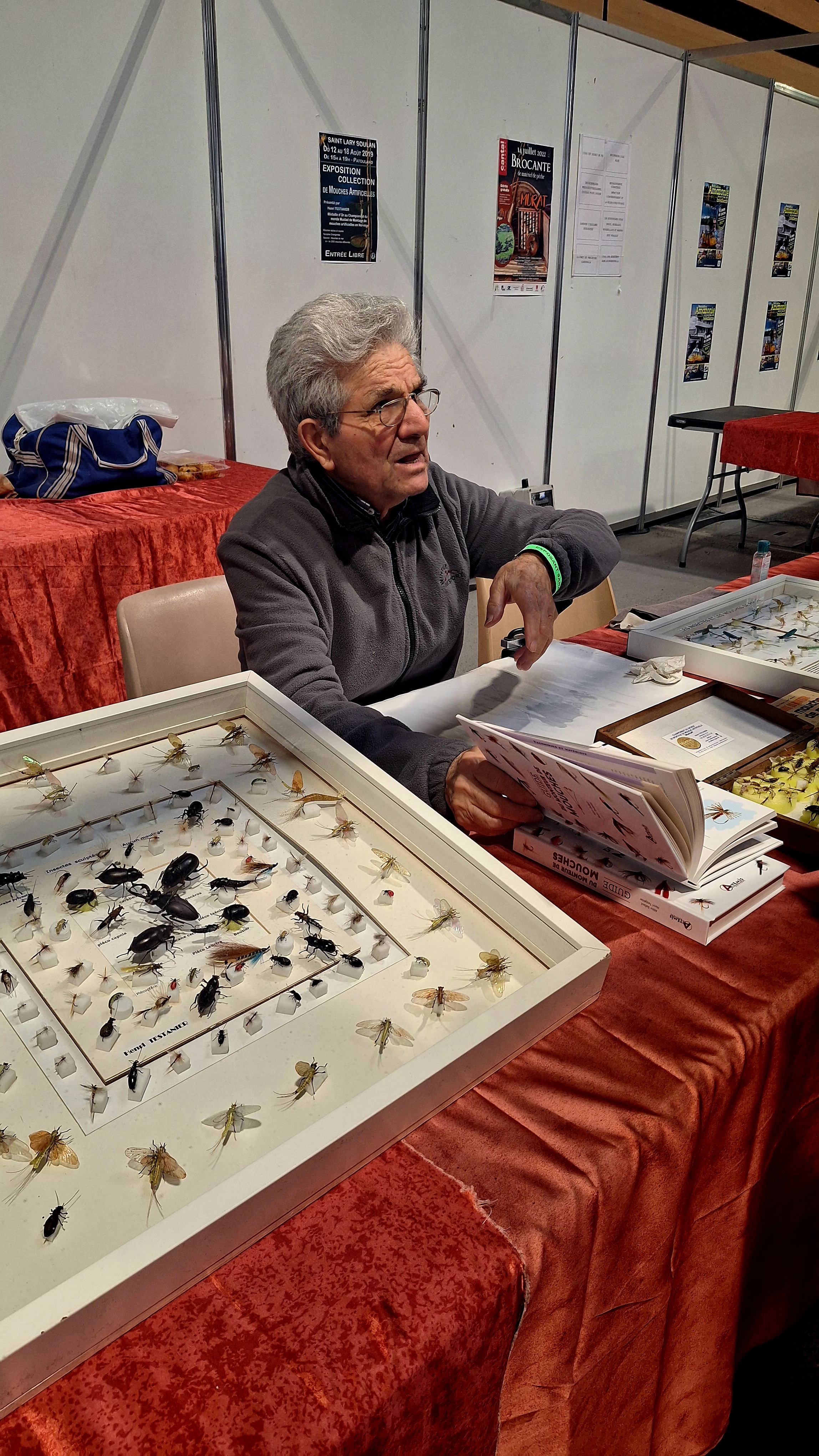 Mr Henri Testanier, un autre grand monteur de mouches artificielles, si vous avez eu l’occasion de passer sur son stand, vous y verrez de superbes mouches crées par ce monsieur.