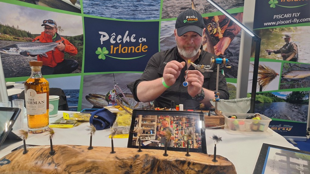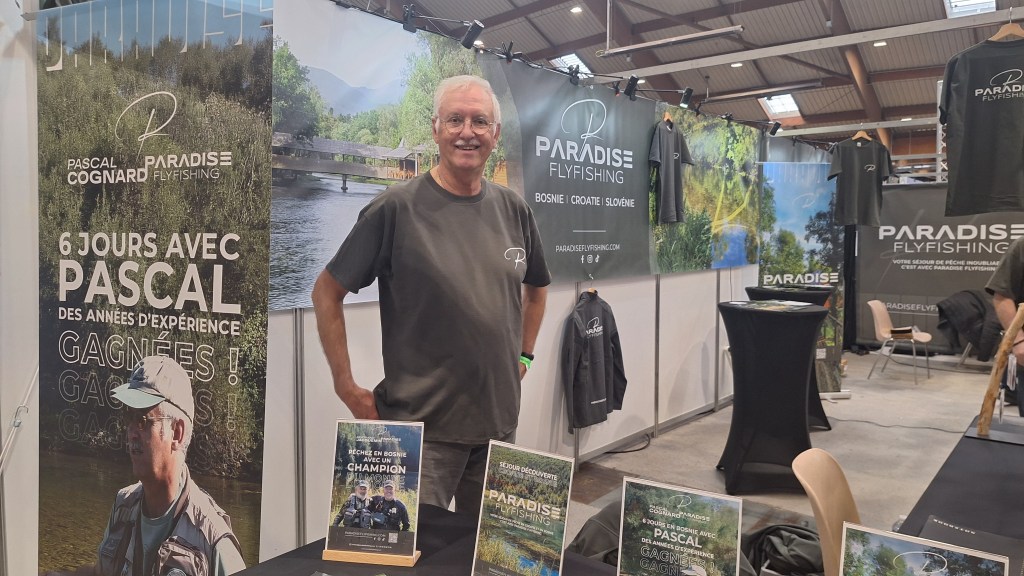 J’en profite pour saluer Pascal Cognard guide de pêche et triple champion du monde de pêche à la mouche, présent sur le stand de Jean-Gilles Rix « ParadiseFlyfishing »