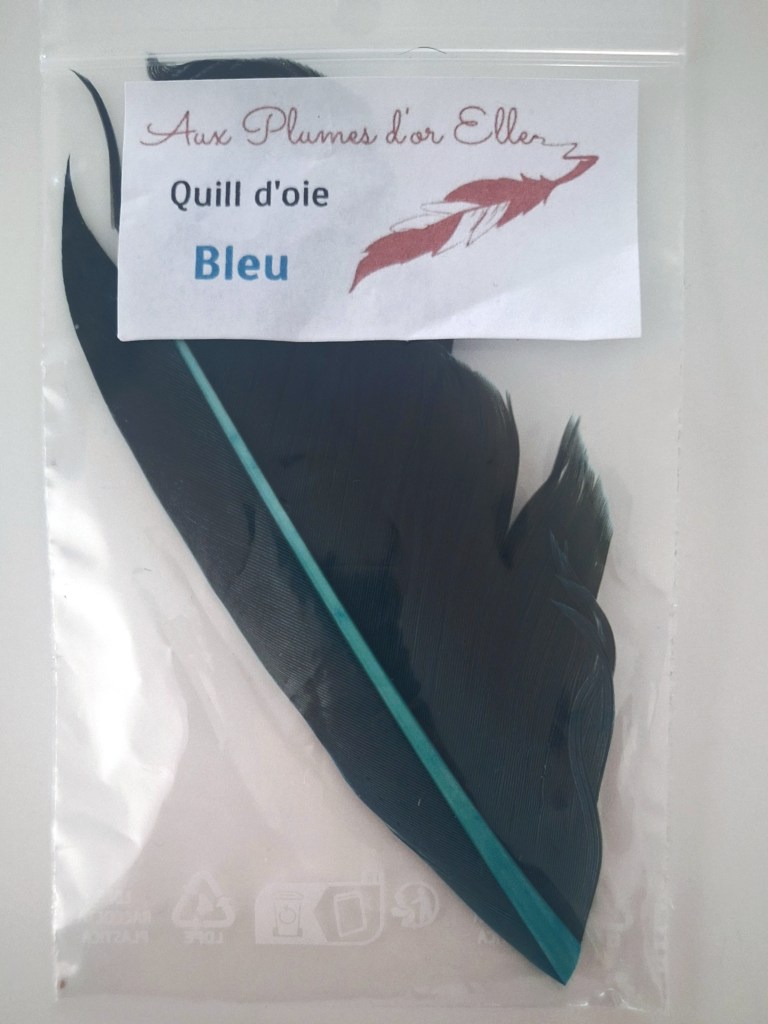 Le quill bleu avec lequel je monte mes Curaçaos , ces plumes sont disponibles sur son shop ou chez Damfly.