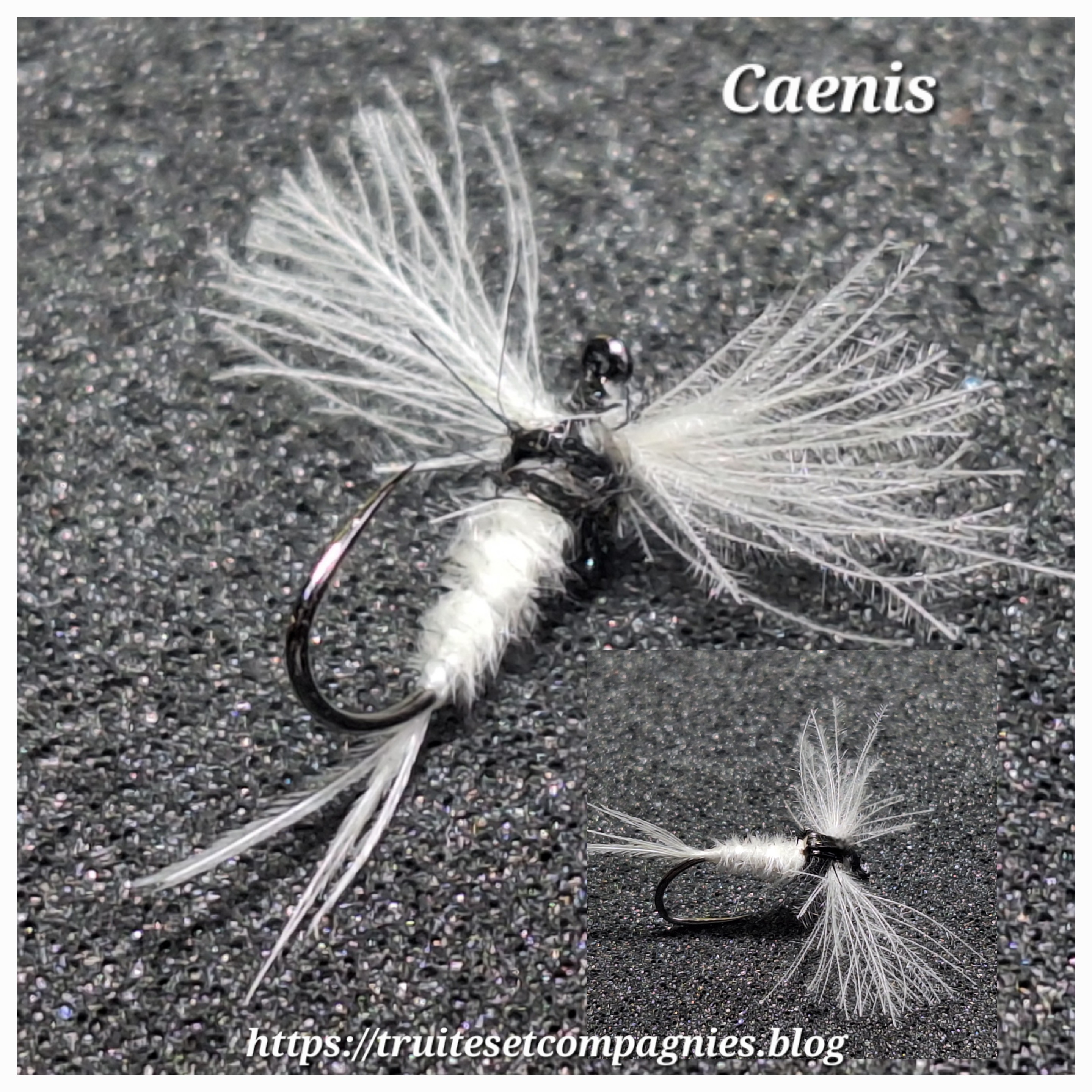 Ayant récupéré ces plumes, je savais qu’elles me serviraient un jour ou l’autre, dont ce caenis, mais également une autre mouche réalisée avec les mêmes plumes et que je publierais un peu plus tard dans la saison.