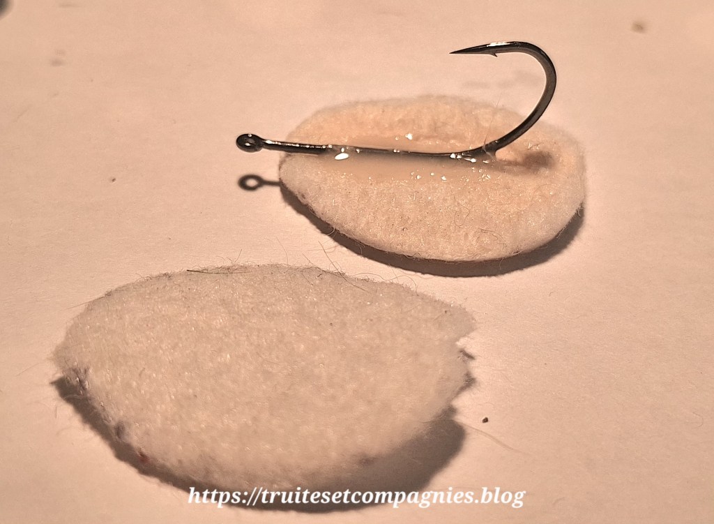 Cette envie de pêcher le bar ou loup à la mouche, ne date pas d’aujourd’hui, ça me trotte depuis longtemps, sans jamais oser passer ce cap, ne connaissant pas grand chose sur les spots et leurs meurs, à part quelques petites informations glanées de ci,de la et de ce fait , l’envie devient de plus en plus grandissante. D’ où le fait de vouloir me faire mes crabes avec des patins feutres que l’on met sous les chaises et avec des matériaux que j’avais sous la main. Afin de tester ça dans l’avenir, d’ici là, j’ai encore du temps pour me confectionner une petite série pour une future utilisation en bord de mer.
