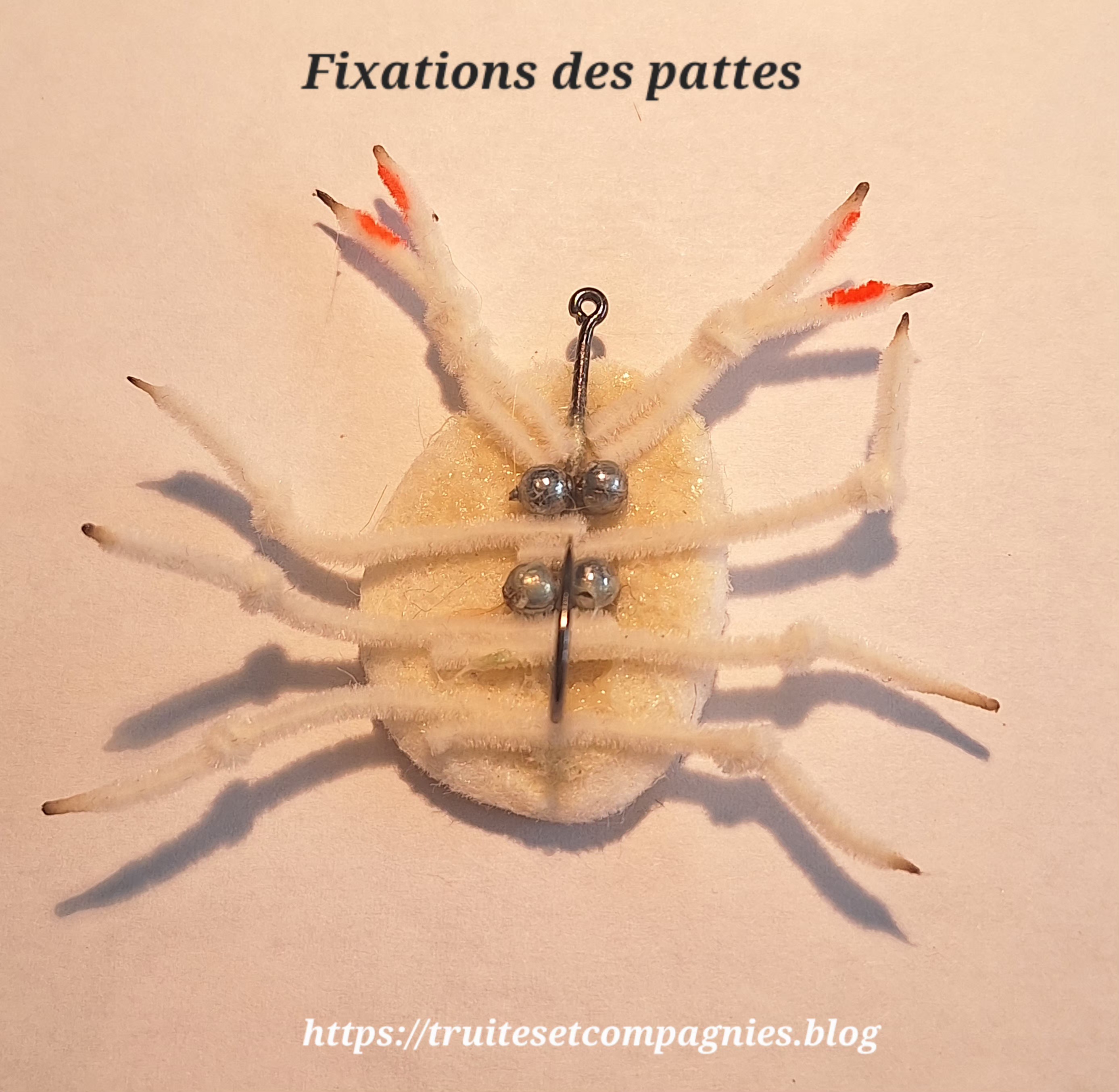 Week-end pluvieux et neigeux, donc séances montages, c’est par ce tuto, que je vos propose étapes par étapes, une imitation de crabe blanc réaliséavec des patins feutrés, découpés dans une plaque de feutre comme présenté ci-dessous.