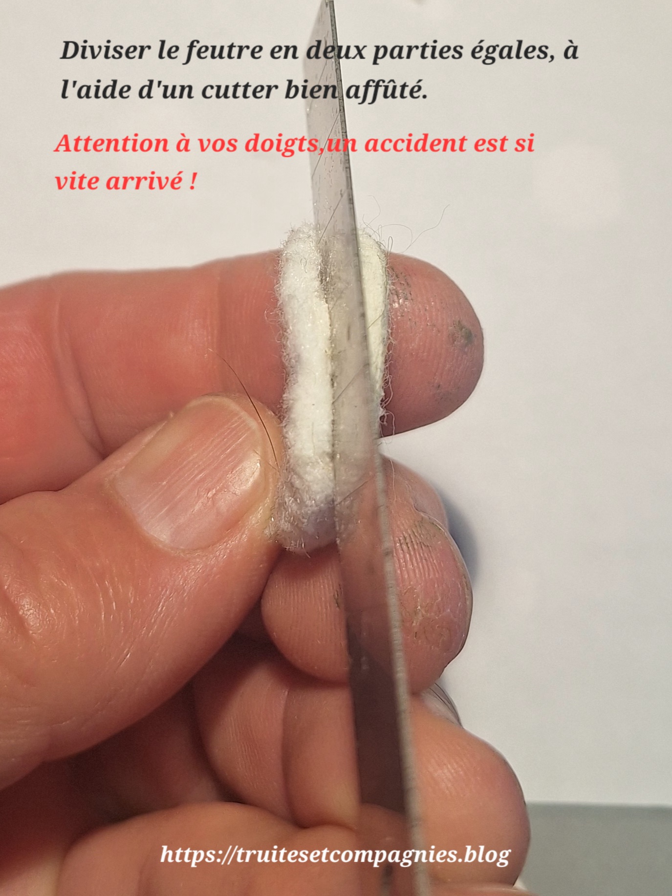 La plaque de feutre d’une épaisseur de 5 mm que j’ai utilisé, que je possède depuis une bonne vingtaine d’année, m’a été donnée par un pote kiné, car j’avais besoin de pour les semelles de mes chaussures de wading.