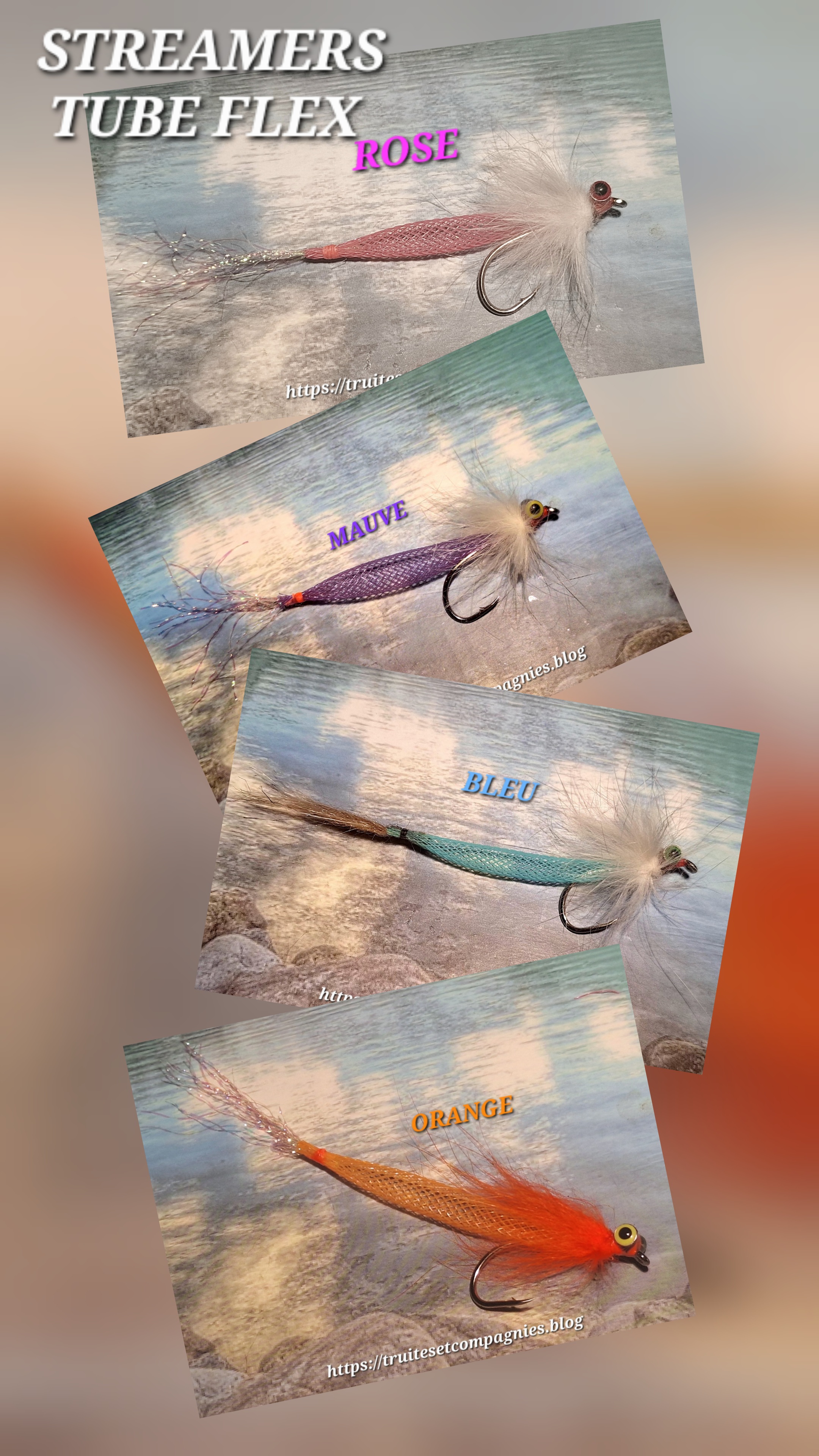 Voici quelques streamers réalisés avec ce matériaux, que je vous propose aujourd’hui, toujours dans l’objectif de déclencher l’intérêt des poissons face à ces imitations d’alevins ou poissons fourrages, que ce soit en mer comme en mer, en lacs, réservoirs ou rivières.