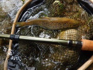 Mais tout ceci n’est qu’une approche globale, la canne de Dupont ne conviendra sûrement pas à Durand , et avec un peu de « métier » vous pourrez fouetter avec n’importe quelle canne ….Il suffit de sentir son action… Je rajouterais que certaines cannes de « facteurs de cannes » sont bien meilleures que des marques réputées ,mieux finies ,liège de meilleur qualité ,anneaux porte moulinet ,respect de l’épine etc. Enfin je vous conseillerais pour commencer de vous faire la main sur un blank pas cher ou sur une vieille canne que vous démonterez. En tout état de cause en montant vous même vous économiserez environ 50% du prix. 4/ Mais où vais -je trouver tout ces produits ??? 2 ou 3 commandes chez des marchands différents ??? France, étranger ?? La solution de facilité: Tous les facteurs de cannes peuvent vous fournir une grosse partie de ce dont vous avez besoin et surtout vous conseiller: Personnellement j’ai pris la totalité chez Clément Lavaux facteur de canne à mouche, pour celle ci dessous le modèle discrétion 10’#de 3 et j’en suis très très satisfait. Mais il y a aussi Eddy FISHBONE (Belgique) cf Yannick Rivière (j’ai pris mon premier matos chez lui , un blank CTS 10’6 # 6 ),j’ai pris aussi un Rainshadow 9’#5 chez Rodhouse ,Christian LAUNSTORFER près de la Touques ,GATTI et POZZOLINI Italie si vous voulez une « spéciale lancer svirgolato (Pozzo parle français mais pas son épouse. ,mais je peux vous aider, Mouches shop a aussi un site très bien fait. N’ayez pas peur ils sont tous très sympas, n’hésitez pas à les appeler Enfin , si vous avez essayé plusieurs cannes du commerce vous devez connaitre l’action que vous préférez et le type de canne avec lequel vous vous sentez le mieux.