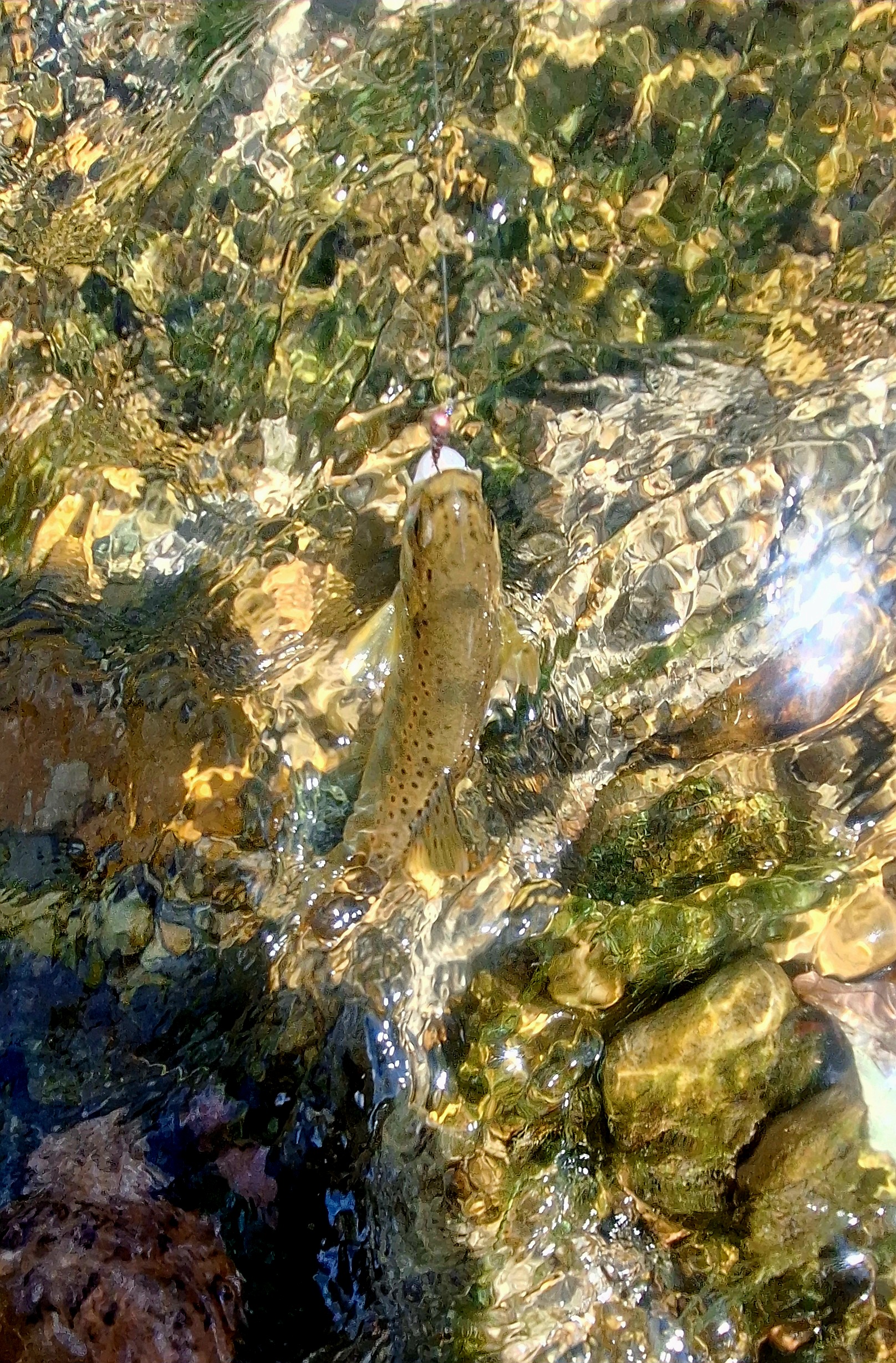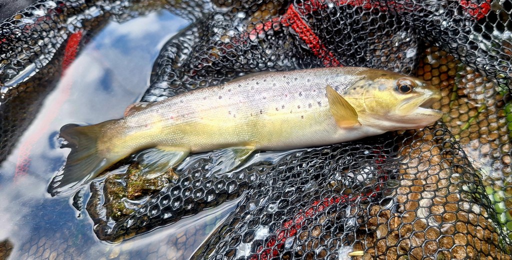 De mon côté j’en fais monter quelques-unes aussi, malgré ça, les truites n’étaient pas très actives. Nous avons trouvé une rivière quasi fermée, du moins pour la pêche en sèche. Je pense qu’à la nymphe, nous aurions pu en faire davantage, mais notre objectif était de ne pêcher qu’en sèche.