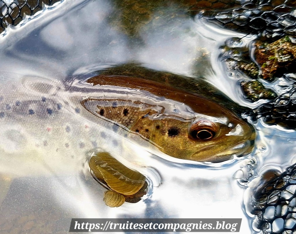 Remise à l’eau, aprés la séance photo dans l’épuisette , me voila reparti en prospection, avec toutefois un petit passage à vide sur près de 100 m , le spot était quasi désert , pourtant je sais que ces postes sont toujours fréquentés par quelques jolies truites, mais cette fois ce n’était pas l’endroit ou elles se trouvaient.