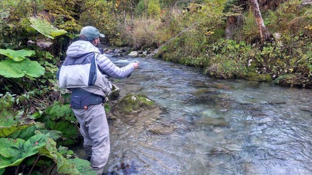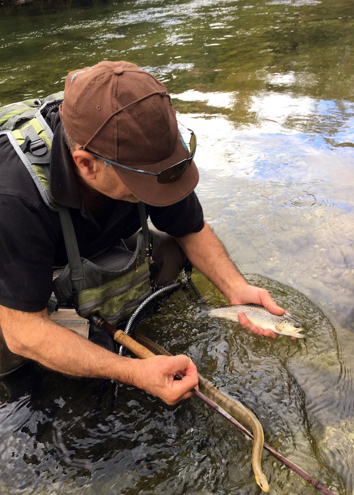 Je lui fait part que chaque année depuis 3 ans, je vais pêcher dans les Dolomites à l’automne avec notre guide Stefano Fredizzi et il me répond qu’il le connait car ils sont amis, comme quoi le monde de la pêche à la mouche est vraiment petit !