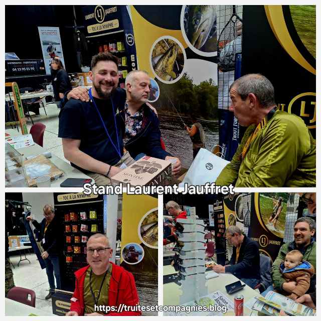 Stand de Laurent Jauffret : Le régional de l’étape, l’incontournable, je ne pouvais pas, ne pas m’arrêter sur son stand sans quoi il m’aurait tué mdr !!. Lolo, de son pseudo, est toujours de bonne humeur, il n’est pas avare de conseils techniques grâce à ses tutos qu’il a nommé » Les tutos de Lolo « , pour la technique de la nymphe au toc, dites pêche à la Bouboule , alors n’hésitez pas à rejoindre le groupe sur Facebook, ce week-end il vient de passer le cap des 5000 adhérents.