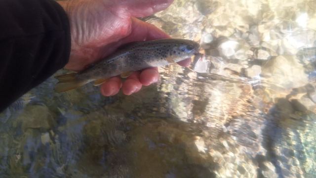 De mon côté j’en fais monter quelques-unes aussi, malgré ça, les truites n’étaient pas très actives. Nous avons trouvé une rivière quasi fermée, du moins pour la pêche en sèche. Je pense qu’à la nymphe, nous aurions pu en faire davantage, mais notre objectif était de ne pêcher qu’en sèche.