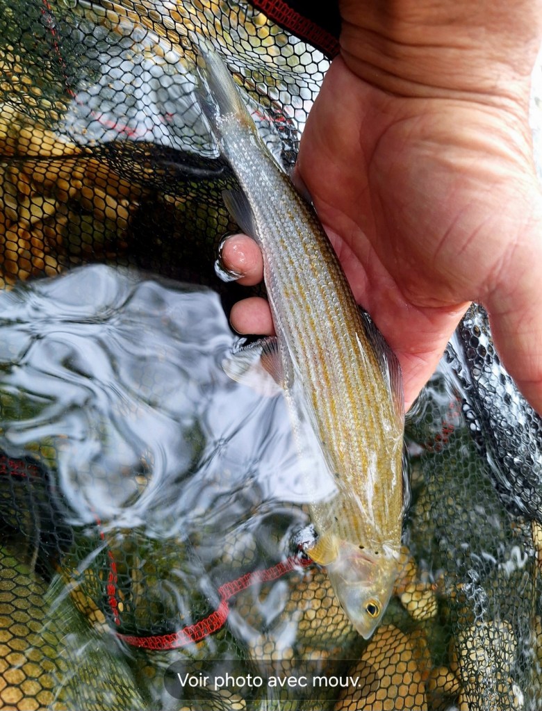 Salut à tous, voici un petit compte rendu petit de cet après-midi, du 8 septembre, avec un temps mitigé entre soleil et nuages. J’ai trouvé une eau bien fraîche , aucun insecte aperçu en surface, encore moins de gobages , le niveau d’eau était correct et une eau claire et fraîche. J’ai donc choisi de pêcher en nymphe au fil ( Naf) , les poissons n’étaient pas très actifs toutefois, malgré quelques ombres pris, dont un joli depiqué. Je fini ma session avec six ombres et 3 vairons, pris sur la nymphe de potence . J’ai eu une invitée surprise, une petite couleuvre viperine, profitant de la chaleur des graviers, pour se faufiler tranquillement entre mes chaussures 😄.