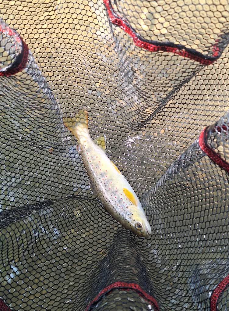 Malgré que cette session fût assez compliquée, avec une eau froide et un vent froid qui s’est levé, une rivière qui s’est soudainement fermée, je tire mon épingle du jeu en prenant cette magnifique truite à points rouges qui m’a bien donnée du mal, prenant le courant et jouant de tous ses muscles pour essayer de rejoindre la berge, sousles saules qui bordent la rivière.