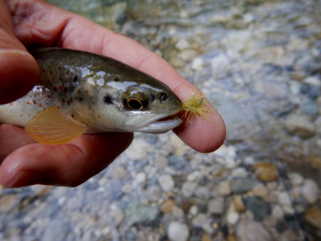 Les truites ont quant à elles ont joué le jeu, il fallait tout de même, allez les chercher dans les zones de confort pour elles vu le débit puissant de la rivière, elles n’étaient pas en plein courant.
