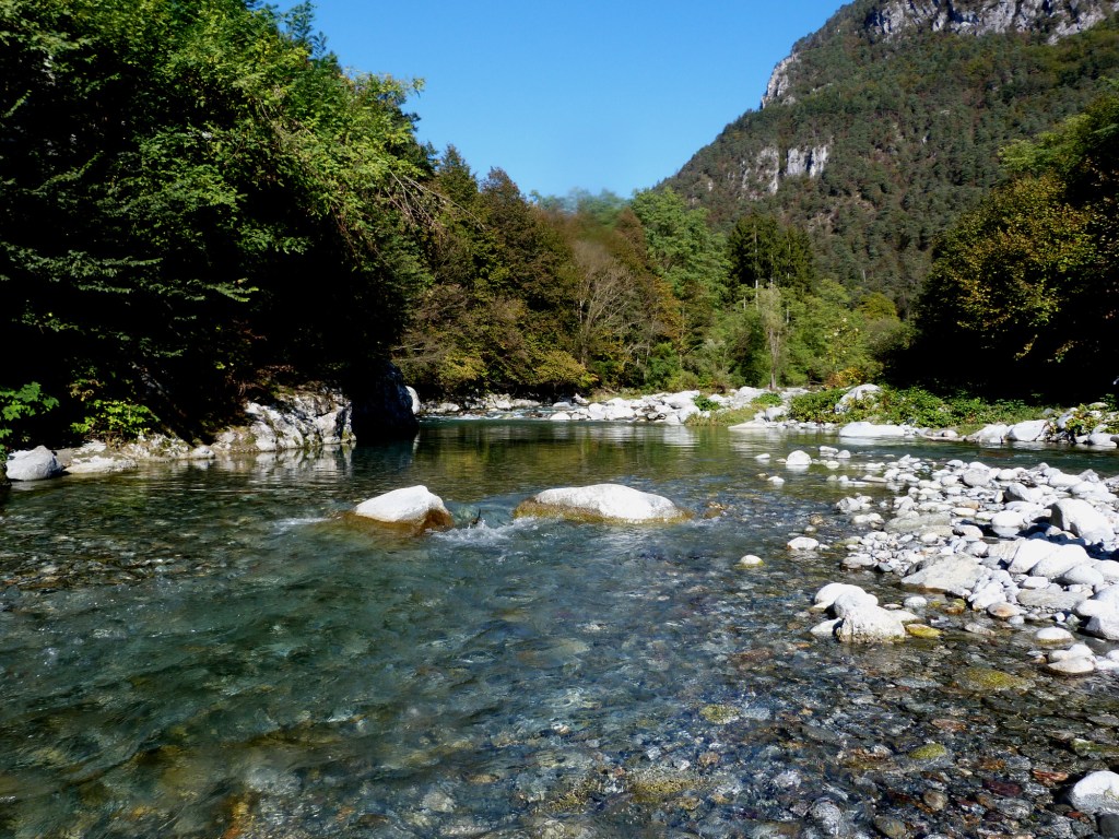 Une fois nos bagages rangés, nous sommes allés voir la rivière qui passe presque au pied du village et de retrouver Stefano, notre guide avec qui nous avions rendez-vous, afin de faire connaissance, Stéphane avait déjà réalisé un stage avec lui l’an dernier.
