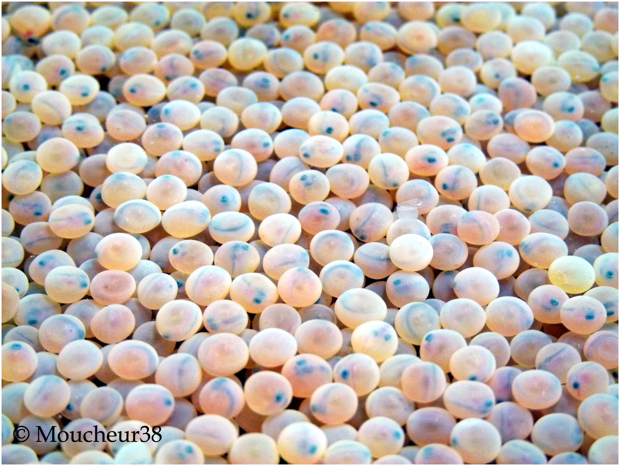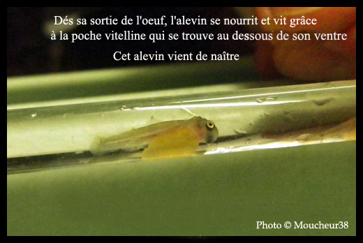 Incubation : Selon la température de l’eau la durée sera plus ou moins longue. Le calcul se fait en degré jour, donc 42 jours dans une eau à 10° soit 420°/jours. Si l’eau est encore plus froide, cela rallongera le temps d’incubation.